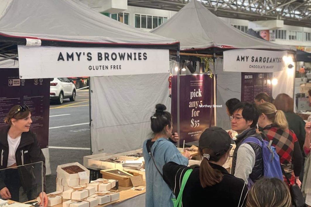 Our largest market stall in Brisbane. View and sample over 60 Amy Sargeantson products. Including Amy's signature Brownies.