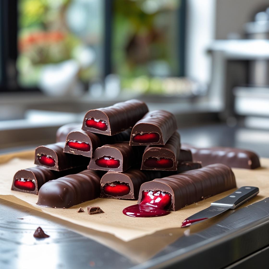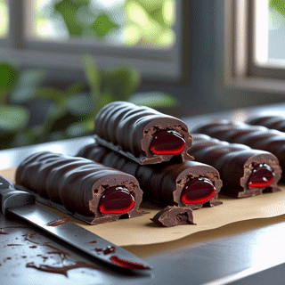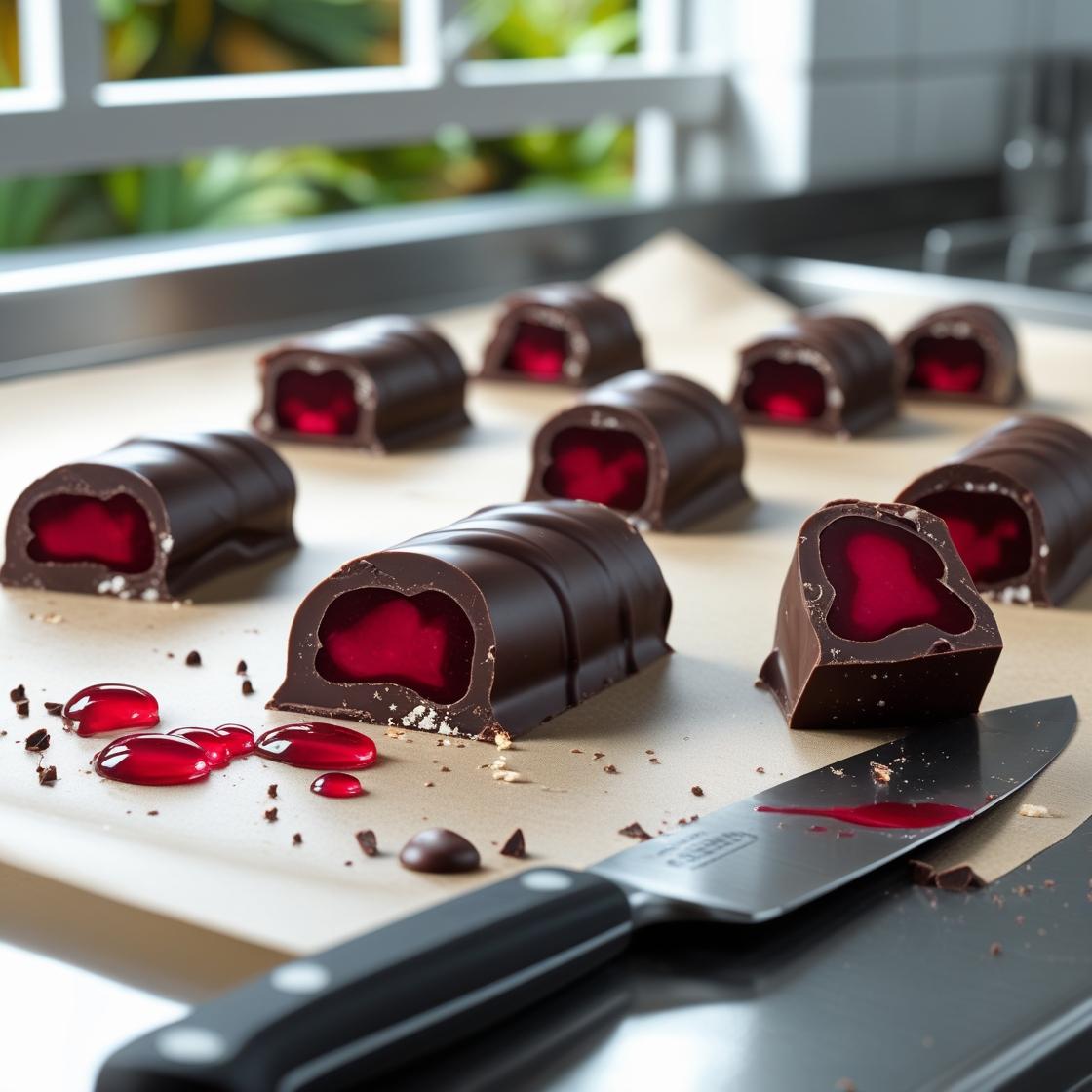 Amy's favourite 36 Short Sour Cherry Liqueur (South Australia), slightly candied & encased in a layer of 77% cacao dark chocolate.