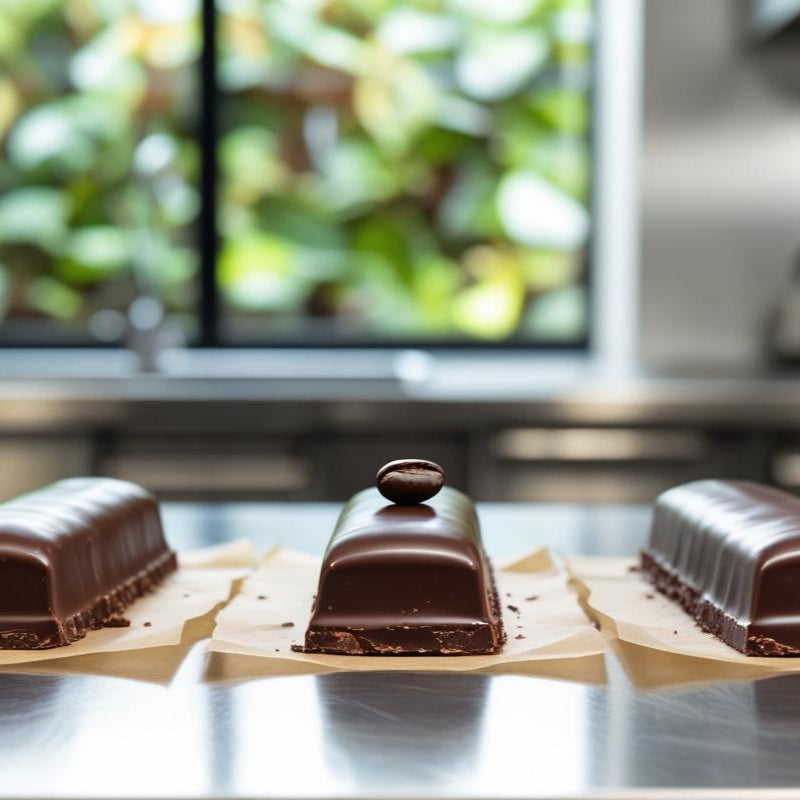 My fresh cream, finely ground hazelnut & espresso coffee ganache encased in our 77% cacao dark chocolate. These sell out early at the markets most weekends, perhaps its the caffeine :)