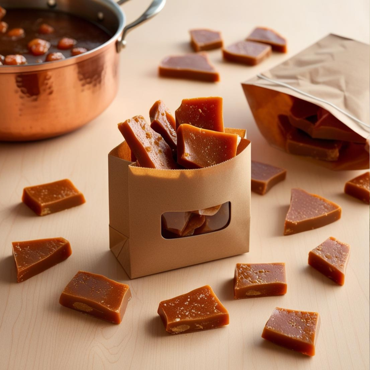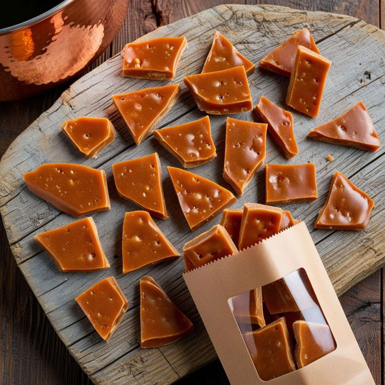 My popular fresh organic raw molasses toffee. Aerated for crispy easy eating.